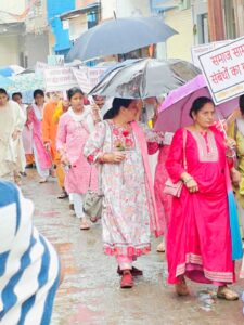 बारिश में भी पद यात्रियों का उत्साह ठंडा नहीं हुआ