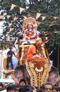 सवारी के निकलने के पूर्व सभामंडप में पूजन-अर्चन मुख्य पुजारी पं. घनश्याम शर्मा द्वारा संपन्न् कराया गया।