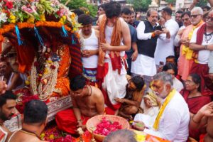 सवारी के निकलने के पूर्व श्री महाकालेश्वर मंदिर परिसर के सभामंडप में सभामंडप में मध्यप्रदेश शासन के पंचायत एवं ग्रामीण विकास मंत्री श्री प्रहलाद पटेल ने भगवान श्री महाकालेश्वर का पूजन-अर्चन किया और आरती की। पूजन-अर्चन शासकीय पुजारी पं.घनश्याम शर्मा द्वारा संपन्न कराया गया। सर्वप्रथम भगवान श्री महाकालेश्वर का षोड़शोपचार से पूजन-अर्चन किया गया। मंत्री श्री पटेल ने मन्दिर से चलकर रामघाट पर पालकी का पूजन भी किया।