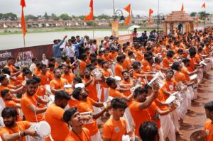 बाबा महाकाल की सवारी में डमरू वादन की मंगल ध्वनि से भगवान शिव की स्तुति की गई। डमरू वादकों द्वारा एकसाथ लयबद्ध रूप में आकर्षक एवं मनमोहक प्रस्तुति देकर श्रद्धालुओं का मन मोहा। उल्लेखनीय है कि श्रावण का तीसरा सोमवार उज्जैन के लिए ऐतिहासिक रहा। महाकाल लोक के शक्तिपथ पर 1500 डमरू वादकों ने एकसाथ एक समय डमरू वादन कर विश्व कीर्तिमान रचा। बाबा श्री महाकाल के भक्तों ने हर्षोल्लास और उमंग से सवारी में भाग लिया और डमरू वादकों का स्वागत किया।