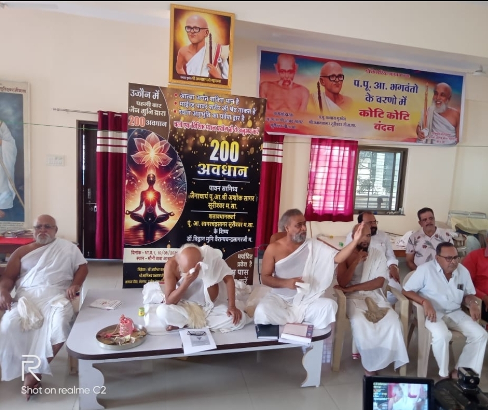 उज्जैन : श्वेतांबर जैन मूर्तिपूजक तपागच्छ के सागर समुदाय के उज्जैन-भैरूगढ़ माणिभद्रजी तीर्थ उद्धारक शासनप्रभावक पू. आ. श्री अशोकसागरसूरीश्वरजी म. की निश्रा में उज्जैन में पहली बार 10अगस्त रविवार को सुबह 8 बजे मोनी बाबा आश्रम गंगा घाट मंगलनाथ रोड पर 200 अवधान का प्रयोग हो रहा है।अवधान के आयोजक श्री आदीश्वर चन्दप्रभु जैन श्वे.मू.पू.चा.थु.पा. ट्रस्ट उज्जैन,श्री माणिभद यक्षराज तीर्थधाम आगमोद्धारक चातुर्मास समिति भेरुगढ उज्जैन रहेंगे ।सागरचंदसागरसुरि जी म. सा. ने प्रेस वार्ता में बताया कि पू. आ. जिनचंद्रसागरसूरिजी म. के शिष्य प्रवचन प्रभावक-200 अवधान के प्रेरक आ. सागरचंद्रसागरसूरिजी के शिष्यरत्न वर्धमान तपोनिधि पू. गणी तीर्थचंद्रसागरजी म. के शिष्य मुनि वैराग्यचंद्रसागर के द्वारा यह 200 उवधान का प्रयोग हो रहा है। सागर समुदाय की उञ्जवल परंपरा में अवधान का गहरा संबंध रहा है।मुनि वैराग्यचन्द्र म. सा. मारवाड़ अगियार गाम विशा पोरवाल जैन समाज के काछोली (राज.) के कुलदीपक है। दीक्षा के पूर्व अहमदाबाद-साबरमती में सन् 1998 में 12वीं कक्षा में गुजरात बोर्ड में दूसरे स्थान पर उत्तीर्ण हुए, लेकिन दीक्षित भाई मनि तीर्थचन्द्र म.सा. के पास वेकेशन में गये हुए थे, रिजल्ट लेने के बाद घर नहीं गये और पू. सागरचंद्रसागरसूरिजी के चरणों में जीवन समर्पण कर आज से 26 वर्ष पूर्व 1999 में दीक्षा का स्वीकार किया। उनकी माता साध्वी जिनर्षिताश्रीजी एवं बहन साध्वी महर्षिताश्रीजी ने भी दीक्षा ली है। मुनिश्री ने गुरु सानिध्य में श्रमणचर्या एवं संस्कृत का अध्ययन करके लाडनूं युनिवर्सिटी से पत्राचार कोर्स से जैनोलोजी में बी.ए.,एम.ए. किया। जयपुर युनि. से प्राकृत अकादमी परीक्षा में गोल्ड मेडल प्राप्त किया।एवं मुंबई युनिवर्सिटी से आगमोद्धारक श्री के जीवन कवन-साहित्य पर पी.एच.डी. डिग्री प्राप्त की। मुनिश्री की यह प्रयोग साधना में पू. गुरुदेव आ. सागर चन्द्रसागरसूरिजी की प्रबल प्रेरणा एवं सभी सहवर्ती मुनिगण का प्रशस्य सहयोग रहा है। मोबाईल-कम्प्यूटर के जमाने में मुनिश्री का 200 अवधान का यह प्रयोग युवा-विद्यार्थीओ के लिए पावरफुल प्रेरणा और ज्वलंत आदर्शरूप रहेगा।अवधान यानि ध्यान एवं संयम के माध्यम से उत्पन्न हुई धारणा शक्ति-स्मरणशक्ति का एक अद्भुत प्रयोग है। आत्मा अनंतगुणों से युक्त है, उसमें ज्ञान गुण प्रबल है। आत्मा के उपर लगे हुए ज्ञानावरणीय कर्म के टूटने,हटने पर ज्ञान गुण का प्रभाव दिखने मिलता है।अवधान साधनों से दूर हटकर साधना से शक्ति प्राप्ति की एक मिशाल है। विज्ञान के अनुसार मनुष्य का मन जो कुछ सुनता-पढ़ता-सोचता है उसका प्रथम संगह ज्ञात मन में होता है। ज्ञात मन के सिवा एक अज्ञात मन (सब कॉन्शीयस माईंड) को भी विज्ञान म