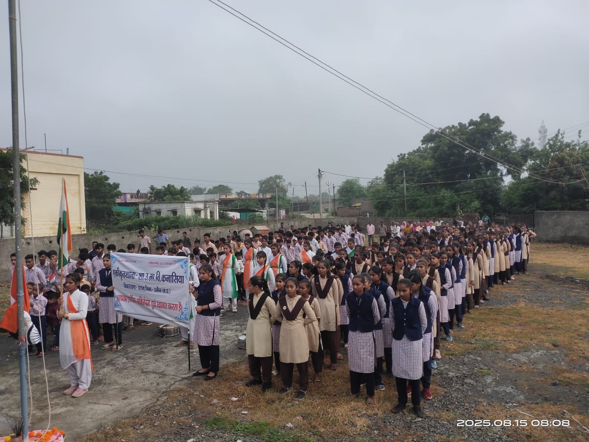 कनासिया। शासकीय उच्चतर माध्यमिक विद्यालय कनासिया में स्वतंत्रता दिवस हर्ष एवं उल्लास के साथ मनाया गया। प्रातः 7:30 बजे संस्था प्रांगण से रैली प्रारंभ होकर मुख्य मार्ग, पंचायत भवन, बस स्टैंड चौराहा व झंडा चौक पर झंडा वंदन करते हुए पुनः विद्यालय पहुँची।