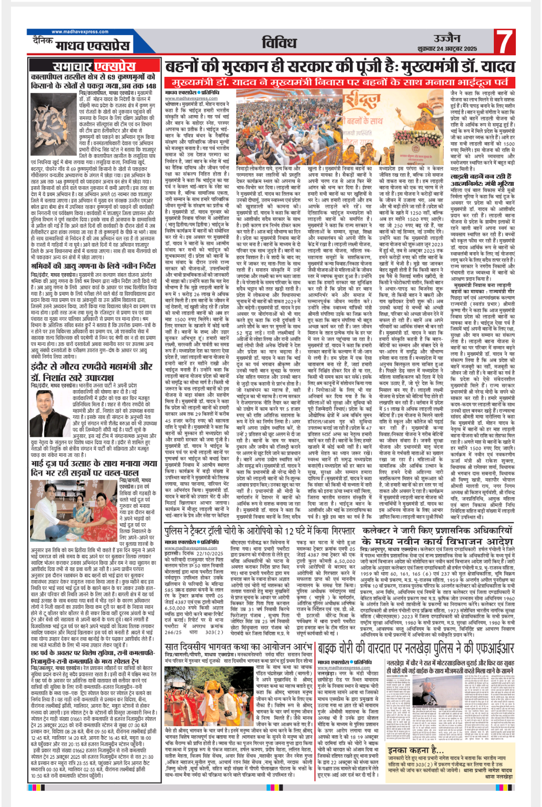 दैनिक माधव एक्सप्रेस 21/10/2025 का अखबार Nitesh Jain October 24, 2025 1 minute read Spread the love About the Author Nitesh Jain Editor मध्यप्रदेश Visit Website View All Posts Spread the love Post navigation Previous: तराना पुलिस की दो कार्रवाई में 8 जुआरी गिरफ्तार, ₹23,840 नकद जब्तNext: राशिफल : 24 अक्टूबर, 2025 Leave a Reply Cancel replyYour email address will not be published. Required fields are marked *Comment * Name * Email * Website Save my name, email, and website in this browser for the next time I comment. Related Stories 1 minute read नववर्ष पर खजराना गणेश मंदिर में उमड़ी भक्तों की भारी भीड़, 3 से 4 लाख श्रद्धालुओं के पहुंचने का अनुमान देवेंद्र साहू "नादान" माधव न्यूज January 1, 2026 0 1 minute read रामलला की प्राण-प्रतिष्ठा की दूसरी वर्षगांठ…..पीएम मोदी ने कहा, हमारी आस्था और संस्कारों का एक दिव्य उत्सव देवेंद्र साहू "नादान" माधव न्यूज January 1, 2026 0 1 minute read चमोली की सुरंग में दो लोको ट्रेनें टकराईं, 100 से ज्यादा घायल, 5 की हालत गंभीर देवेंद्र साहू "नादान" माधव न्यूज January 1, 2026 0