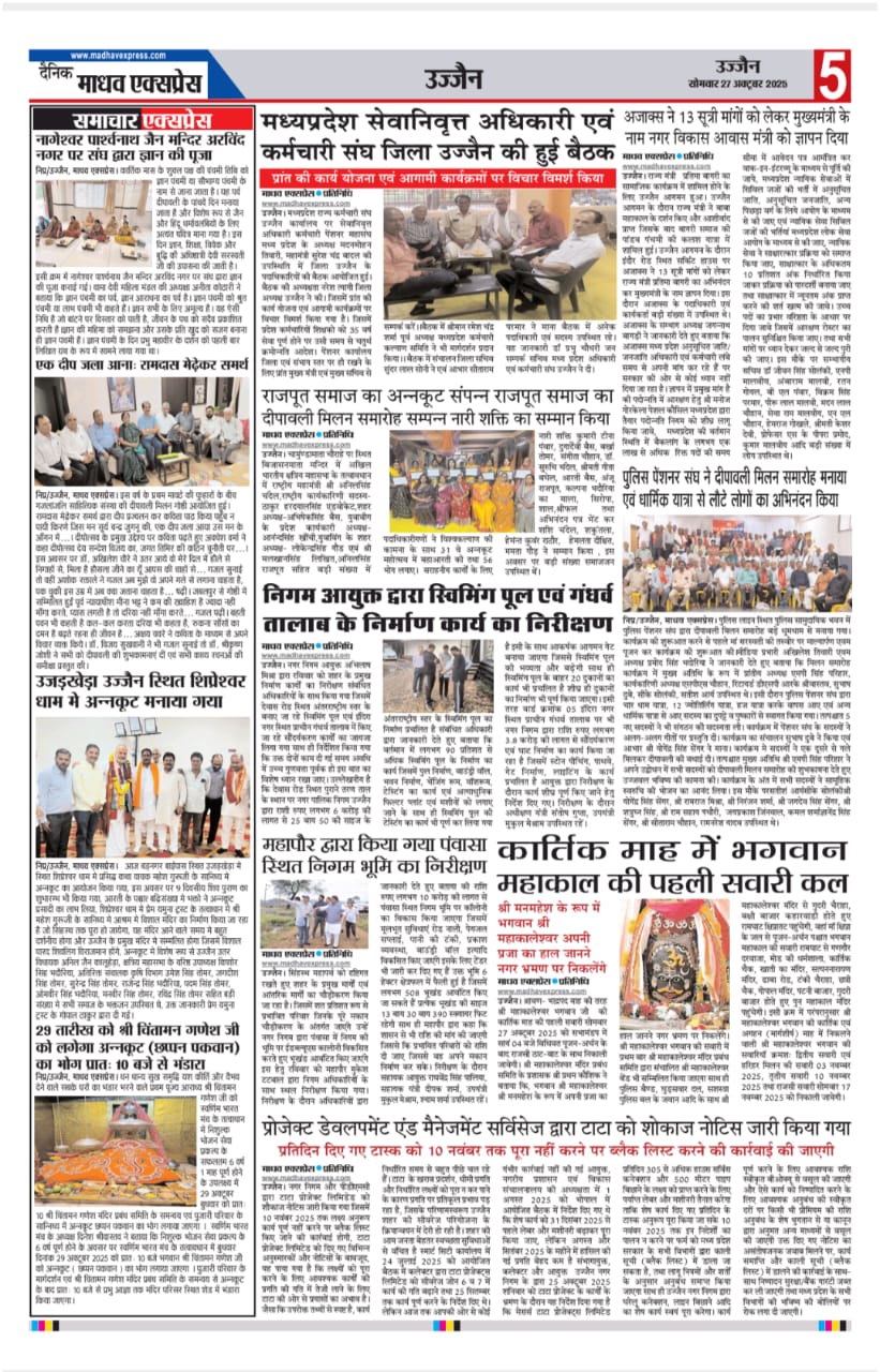 दैनिक माधव एक्सप्रेस आज का अखबार 27/अक्टूबर/2025 सोमवार Nitesh Jain October 27, 2025 Spread the love About the Author Nitesh Jain Editor मध्यप्रदेश Visit Website View All Posts Spread the love Post navigation Previous: छत्तीसगढ़ महतारी की प्रतिमा तोड़ने वालाें पर हाेगी कड़ी कार्रवाई : मुख्यमंत्री सायNext: मुख्यमंत्री साय आज कोरबा और जशपुर जिले के दौरे पर Leave a Reply Cancel replyYour email address will not be published. Required fields are marked *Comment * Name * Email * Website Save my name, email, and website in this browser for the next time I comment. Related Stories 1 minute read मुख्यमंत्री डॉ. मोहन यादव की नववर्ष सौगात: छोटे दुकानदारों को बड़ी राहत Nitesh Jain January 2, 2026 0 राज्यपाल श्री डेका को मुख्यमंत्री श्री साय ने दी नए वर्ष की शुभकामनाएं देवेंद्र साहू "नादान" माधव न्यूज January 2, 2026 0 1 minute read माधव एक्सप्रेस परिवार कि और से नव वर्ष कि हार्दिक शुभकामनाएं आज का अखबार 01/01/2026 Nitesh Jain January 1, 2026 0
