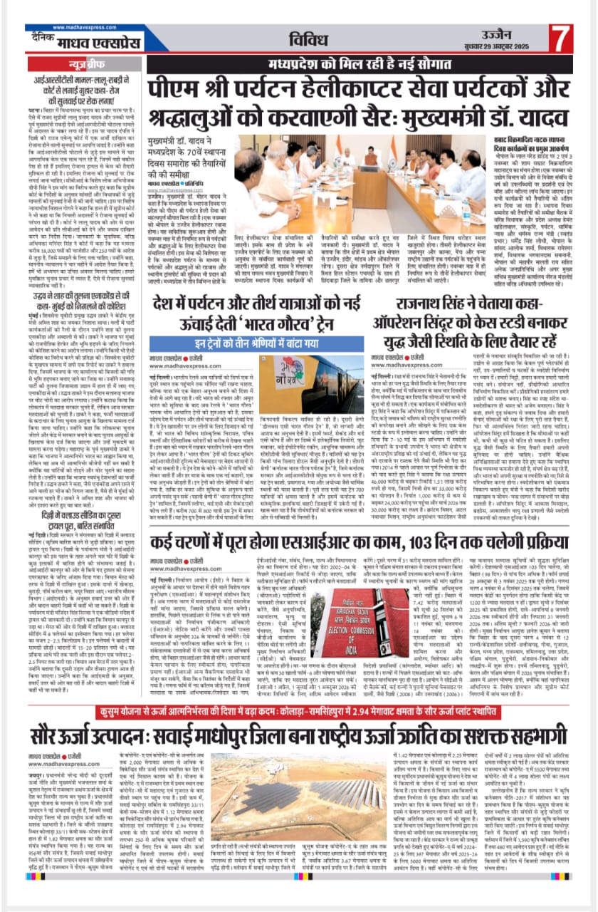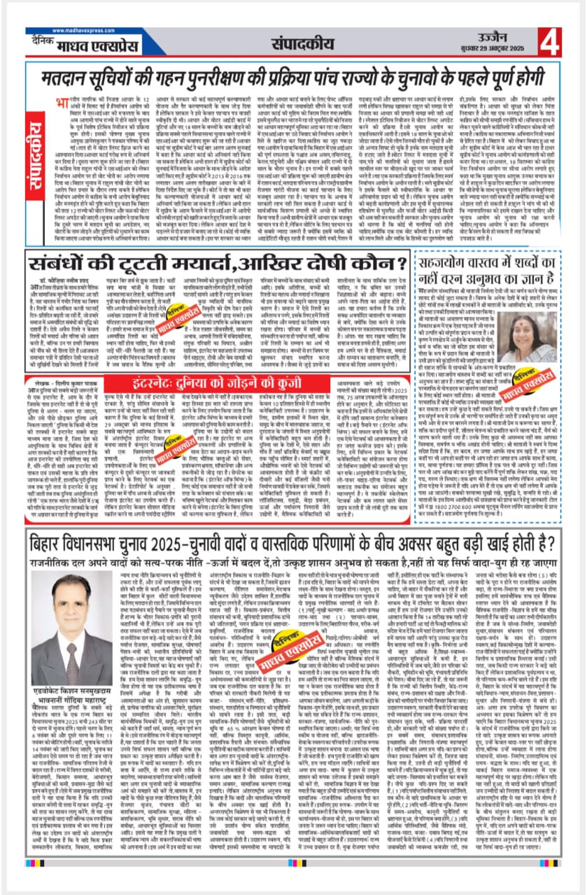 दैनिक माधव एक्सप्रेस आज का अखबार। 29/अक्टूबर/2025 बुधवार Nitesh Jain October 29, 2025 Spread the love About the Author Nitesh Jain Editor मध्यप्रदेश Visit Website View All Posts Spread the love Post navigation Previous: फरहान अख्तर और टीम के साथ लखनऊ में हुआ 120 बहादुर का शानदार लॉन्च इवेंटNext: अमित शाह आज बिहार के दरभंगा, समस्तीपुर और बेगूसराय में करेंगे चुनाव प्रचार Leave a Reply Cancel replyYour email address will not be published. Required fields are marked *Comment * Name * Email * Website Save my name, email, and website in this browser for the next time I comment. Related Stories 1 minute read मुख्यमंत्री डॉ. मोहन यादव की नववर्ष सौगात: छोटे दुकानदारों को बड़ी राहत Nitesh Jain January 2, 2026 0 राज्यपाल श्री डेका को मुख्यमंत्री श्री साय ने दी नए वर्ष की शुभकामनाएं देवेंद्र साहू "नादान" माधव न्यूज January 2, 2026 0 1 minute read भारत के विकास का ग्रोथ इंजन बना छत्तीसगढ़ : श्री गजेंद्र सिंह शेखावत देवेंद्र साहू "नादान" माधव न्यूज January 2, 2026 0