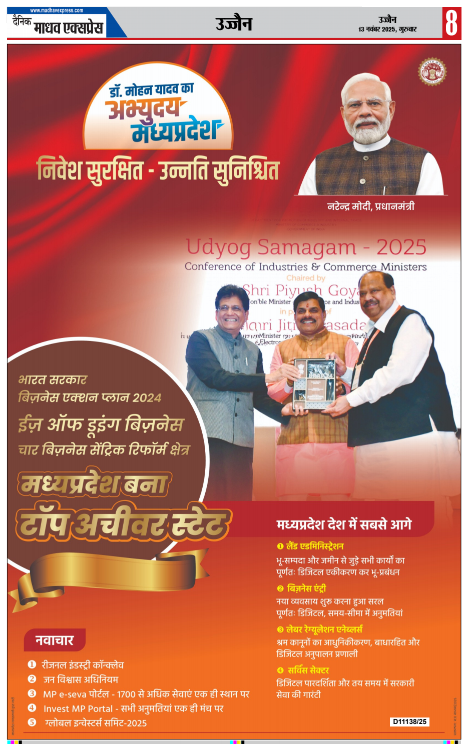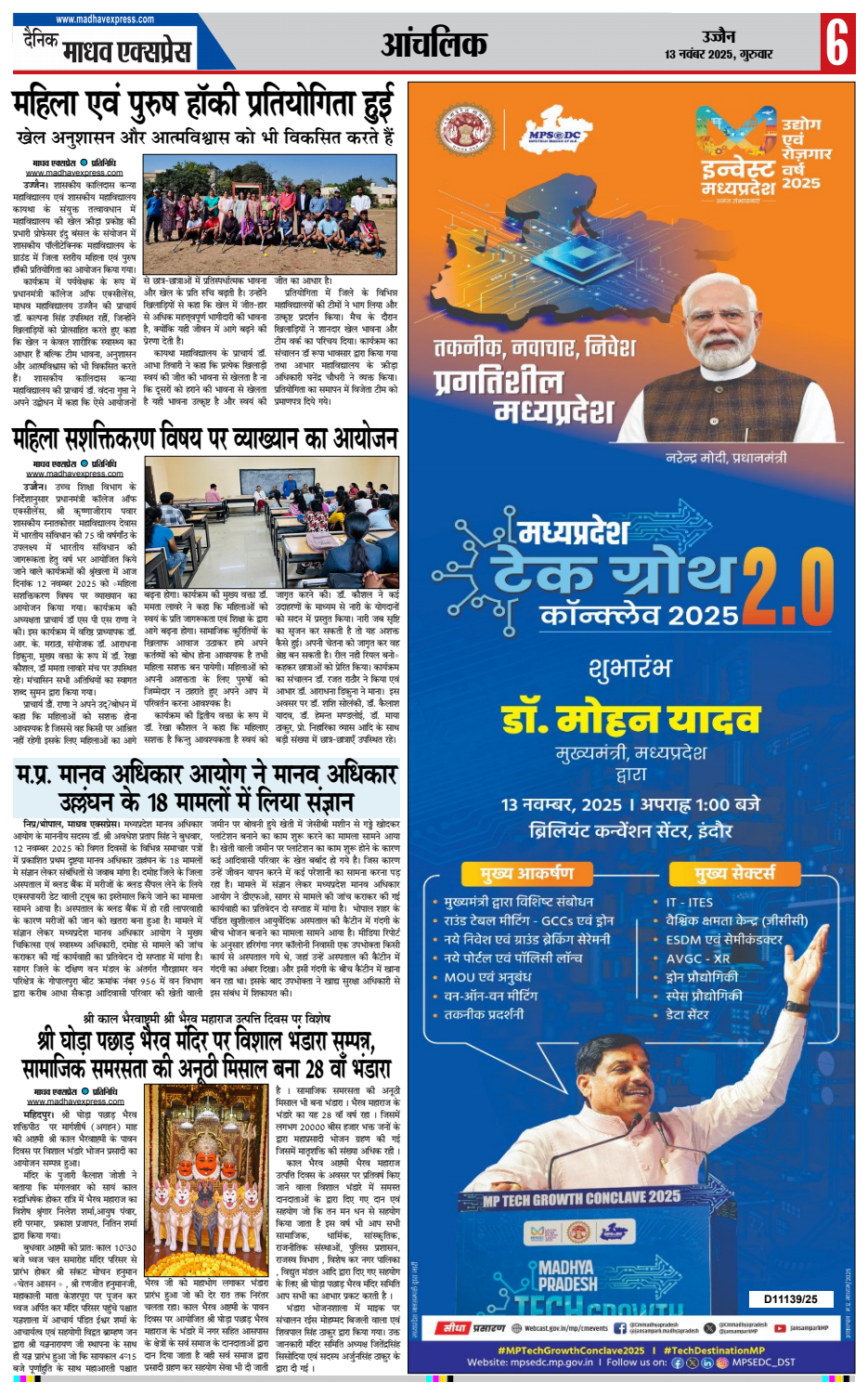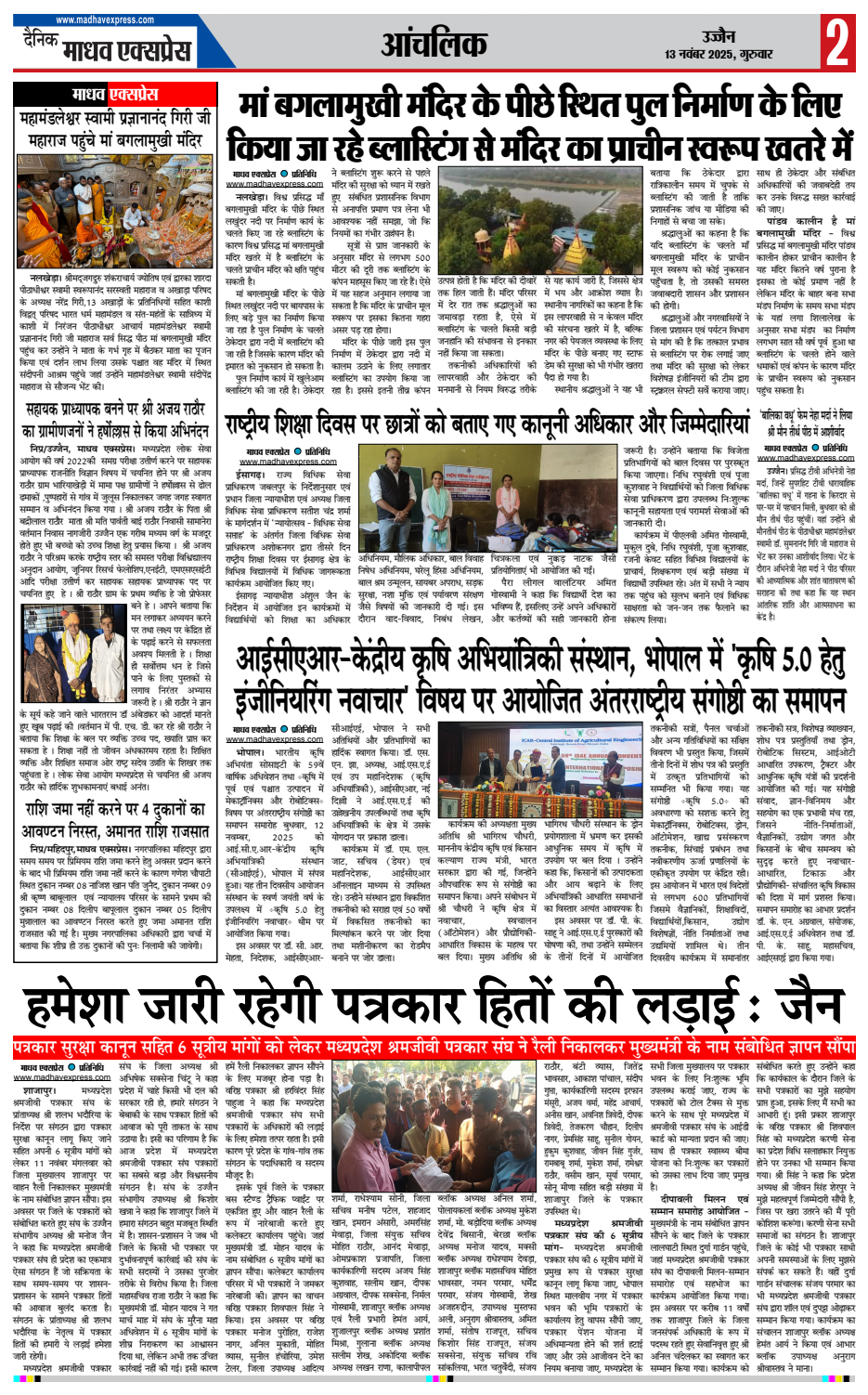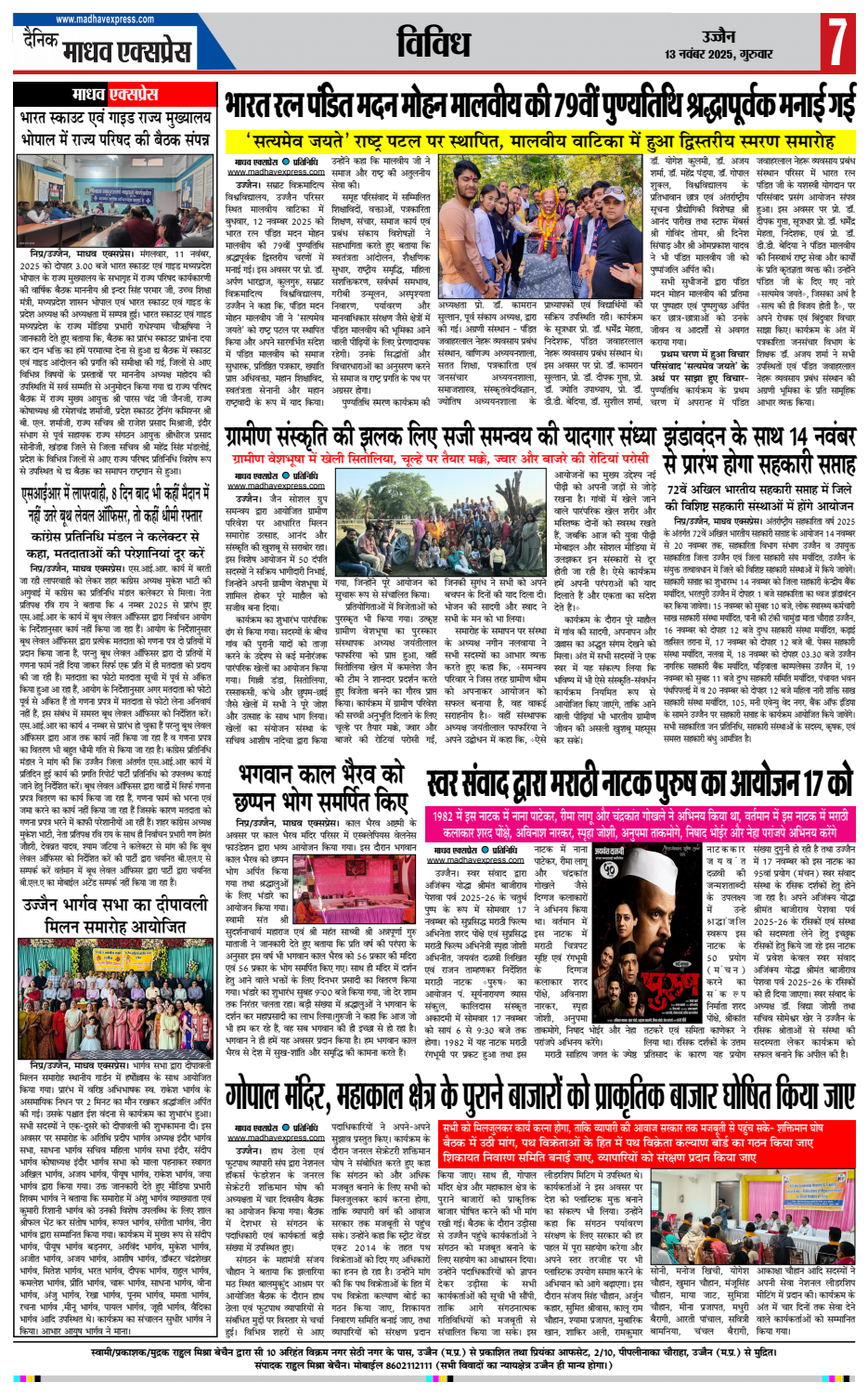 दैनिक माधव एक्सप्रेस 13/011/2025 का अखबार Nitesh Jain November 13, 2025 1 minute read Spread the love About the Author Nitesh Jain Editor मध्यप्रदेश Visit Website View All Posts Spread the love Post navigation Previous: एग्जिट पोल के दावों को दरकिनार करते हुए तेजस्वी बोलेNext: एव्हीएफओ के पद पर एकमुश्त मानदेय पर भर्ती हेतु 17 नवम्बर तक दावा-आपत्ति आमंत्रित Leave a Reply Cancel replyYour email address will not be published. Required fields are marked *Comment * Name * Email * Website Save my name, email, and website in this browser for the next time I comment. Related Stories 1 minute read माधव एक्सप्रेस परिवार कि और से नव वर्ष कि हार्दिक शुभकामनाएं आज का अखबार 01/01/2026 Nitesh Jain January 1, 2026 0 1 minute read 21 दिन में बदलें सेहत और सोच, इंदौर से शुरू हो रहा पीक परफॉर्मेंस चैलेंज देवेंद्र साहू "नादान" माधव न्यूज December 31, 2025 0 1 minute read 1800-233-2085: सेहत का नया सेतु, अब घर बैठे लें डॉक्टर अपॉइंटमेंट Nitesh Jain December 30, 2025 0