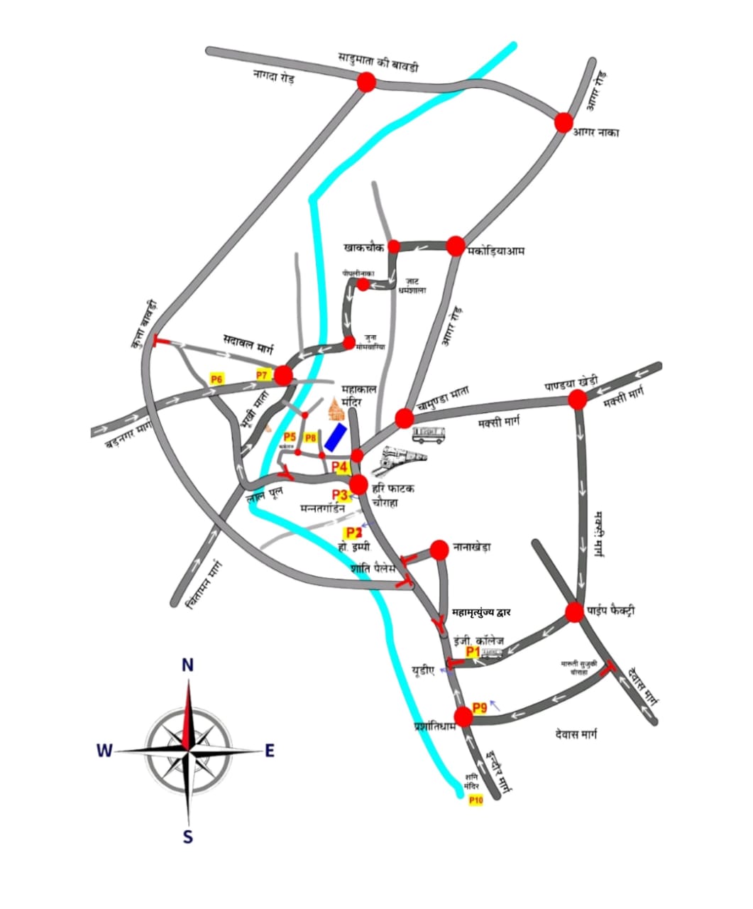 देवास बायपास, नरवर बायपास एवं सिंथेटिक्स मार्ग से डायवर्ट किया जाएगा, ताकि शहर में ट्रैफिक दबाव कम रहे और आपातकालीन मार्ग सुचारू रूप से चालू रहें।